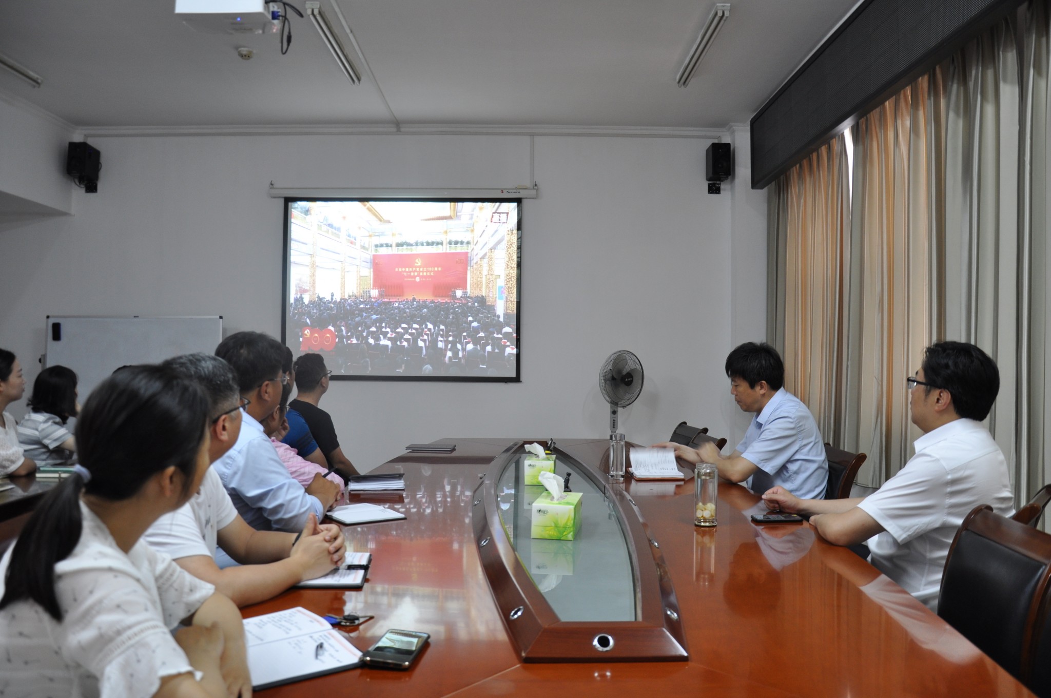 在收看過程中,整個會場秩序井然,與會人員聚精會神。