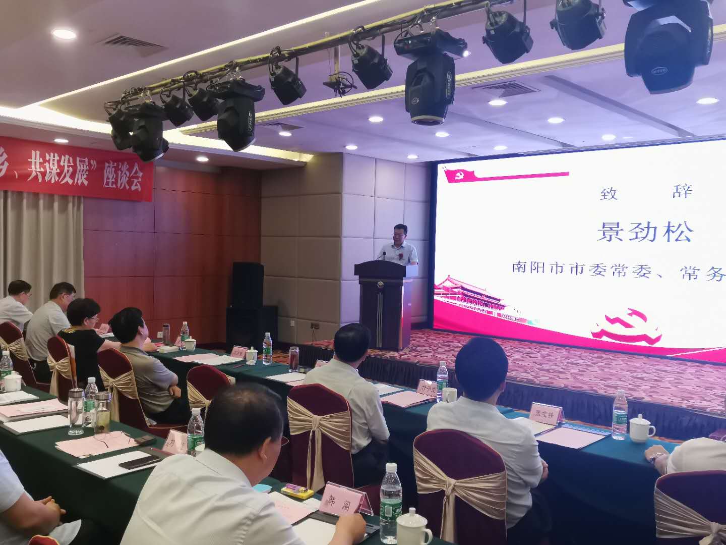 2020年7月15日,南陽(yáng)投資集團(tuán)黨委書記、董事長(zhǎng)楊振中赴重慶出席南陽(yáng)市駐重慶務(wù)工創(chuàng)業(yè)招商引智工作聯(lián)合黨委、服務(wù)聯(lián)絡(luò)組、人才工作站揭牌儀式和“心系家鄉(xiāng)、共謀發(fā)展”家鄉(xiāng)建設(shè)座談會(huì)。南陽(yáng)市委常委、常務(wù)副市長(zhǎng)景勁松參加會(huì)議并致辭。