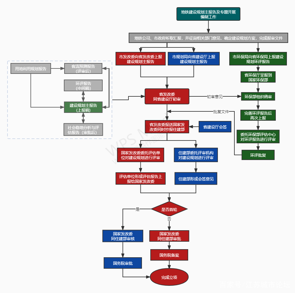 國(guó)家對(duì)于地鐵項(xiàng)目審批不斷收緊,地鐵建設(shè)的審批步驟繁瑣,能否獲得國(guó)家發(fā)改委批復(fù)至關(guān)重要。而在上報(bào)國(guó)家發(fā)改委前還需要通過(guò)省發(fā)改委初審,并完成國(guó)家環(huán)??偩志€網(wǎng)規(guī)劃環(huán)評(píng)、住建部用地預(yù)審、國(guó)家地震局地質(zhì)災(zāi)害評(píng)估、地震安全評(píng)價(jià)等多部門數(shù)項(xiàng)審批,最后再通過(guò)住建部和省建設(shè)廳初審,上報(bào)國(guó)家發(fā)改委。