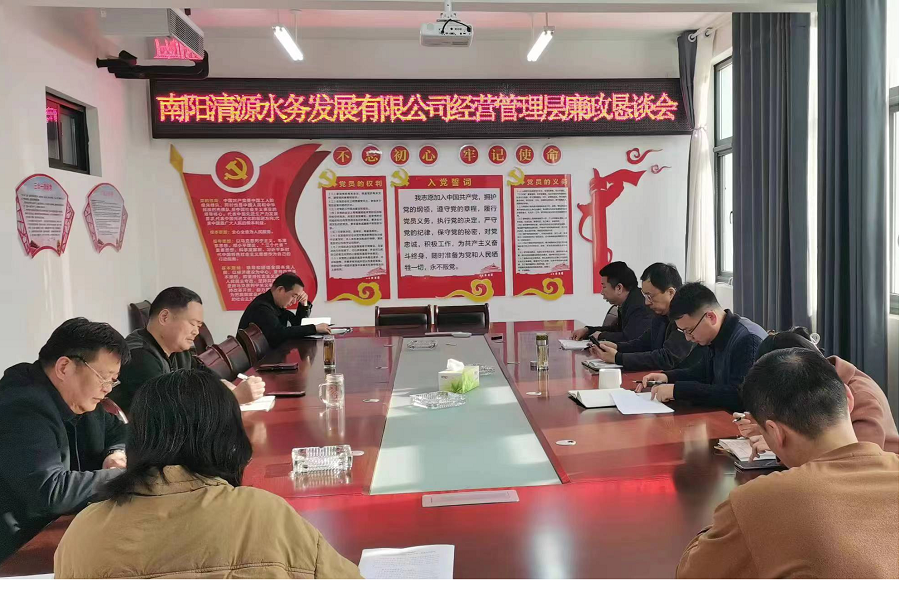 3月29日上午,集團(tuán)黨委委員、副總經(jīng)理、清源公司董事長崔天杰組織南陽清源水務(wù)發(fā)展有限公司經(jīng)營管理層召開廉潔教育懇談會。