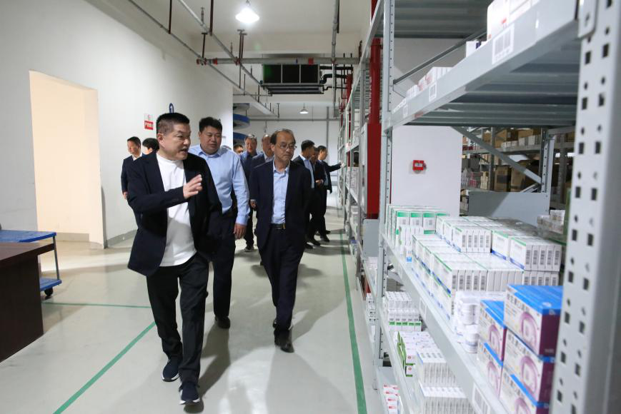 劉九利一行先后參觀了東森醫(yī)藥物流園智能化一體車間、自動生產線和倉儲庫房等,了解了園區(qū)在設計規(guī)劃、建設運營等方面的先進經驗和做法。隨后,雙方在東森醫(yī)藥會議室召開座談會。
