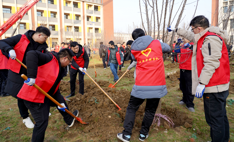 添下一抹新綠,播種一份希望。植樹現(xiàn)場,黨員同志們齊心協(xié)力、分工協(xié)作、熱情高漲,或兩人一組,或三五合作,放苗、扶正、培土、壓實(shí),銜接有序,配合默契,呈現(xiàn)出一派熱火朝天的景象。經(jīng)過大家的共同努力,一排排新栽植的樹苗迎風(fēng)挺立,為市一中新校區(qū)增添了一抹新“綠”,成為一道亮麗的風(fēng)景線。