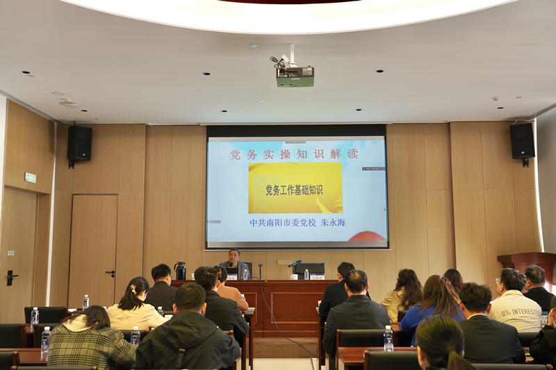 會議邀請中共南陽市委黨校黨建教研室副主任朱永海教授作專題培訓(xùn)。朱永海教授圍繞黨員發(fā)展、黨內(nèi)組織生活開展、黨組織換屆、五星支部建設(shè)等方面,對相關(guān)理論知識和實操內(nèi)容進行了詳細解讀,主題鮮明、內(nèi)容豐富,既有簡明直觀的理論闡釋,又有具體生動的案例分析,大大提升了集團黨務(wù)工作者對黨建知識和工作開展的理解把握。