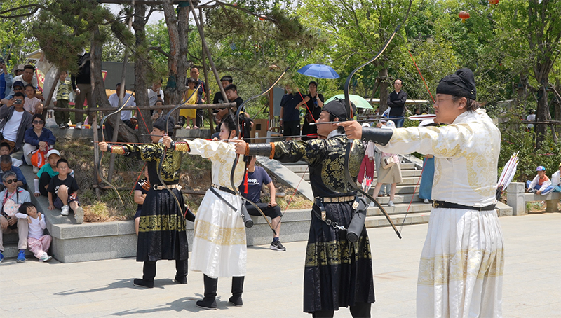此次“端午奇妙游”活動復(fù)原多種傳統(tǒng)端午習(xí)俗與節(jié)慶活動,不僅舉辦了“射五毒”、祭祀典禮等端午傳統(tǒng)活動,還為廣大游客準(zhǔn)備了佩香囊、點(diǎn)雄黃、戴五彩繩、艾水盥洗等經(jīng)典習(xí)俗體驗(yàn)項(xiàng)目。游客自覺有序排起長隊,進(jìn)行“驅(qū)害辟邪”的民俗祈愿,沉浸式體驗(yàn)古人過節(jié)的儀式感,展現(xiàn)了中國傳統(tǒng)端午節(jié)日所蘊(yùn)含的豐富文化內(nèi)涵。