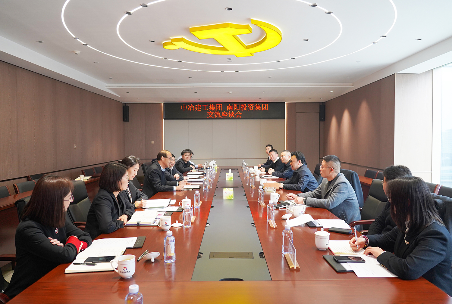 中冶建工集團河南公司總經(jīng)理陳代川,中冶建工集團投資管理公司總經(jīng)理毛紅明,中冶建工集團海外工程分公司總經(jīng)理吳斌,南陽投資集團黨委副書記、監(jiān)事會主席韓玉奇,南陽投資集團黨委委員、副總經(jīng)理楊濤參加座談。